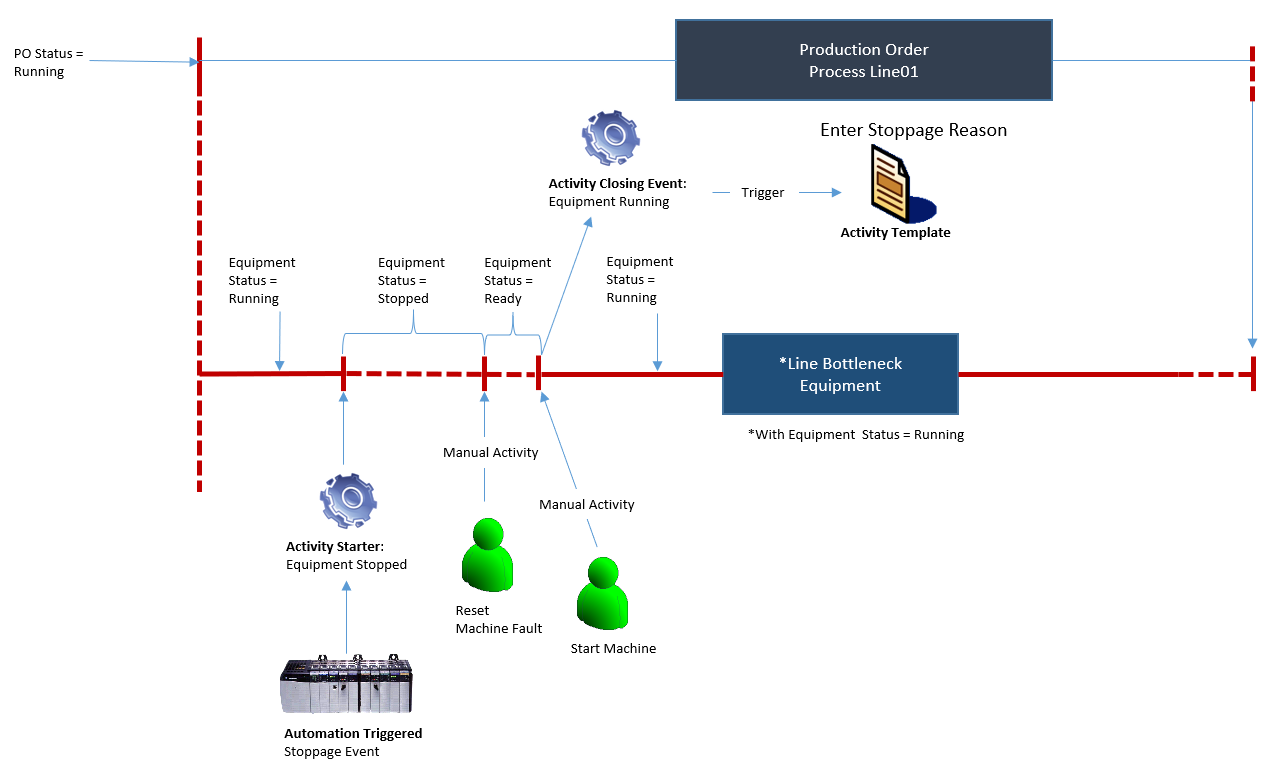 This Activity Template is related to the OEE measurement where the required effective running hours will be derived. This template introduces a pre-defined Stoppage Reason Tree for easy reference.